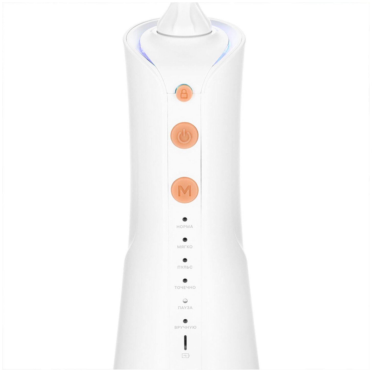 Комплектация 1. Ирригатор –– 1 шт. 2. Резервуар для воды –– 1 шт. 3. База для зарядки –– 1 шт. 4. USB-шнур – 1 шт. 5. Струйная насадка –– 2 шт. 6. Руководство по эксплуатации — 1 шт. 7. Коллекционный магнит — 1 шт.* *опционально