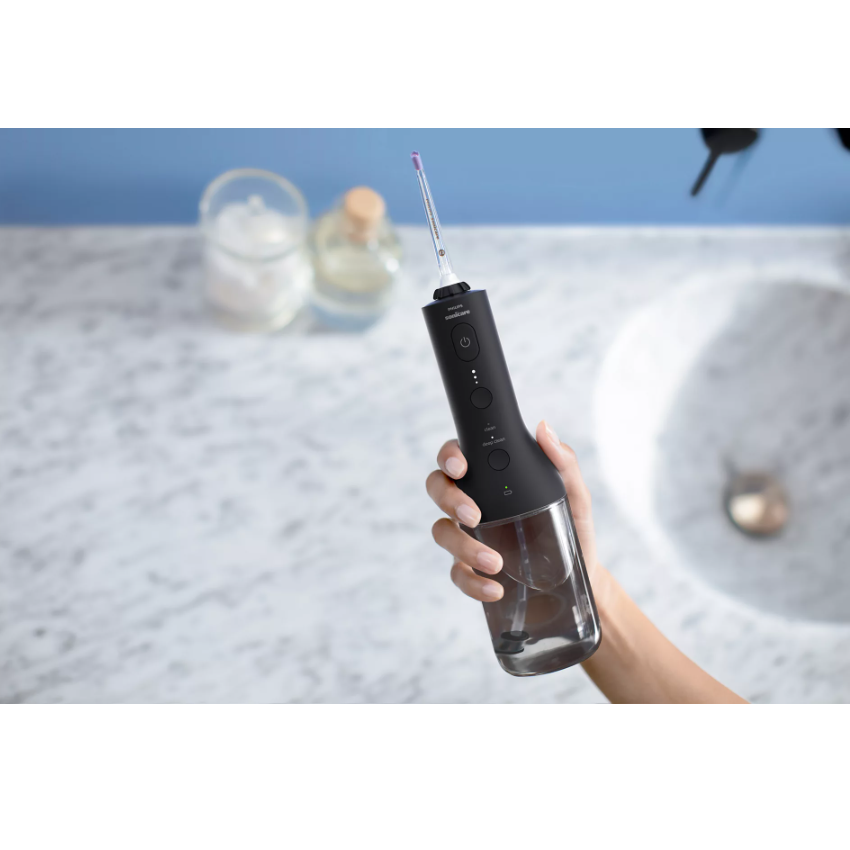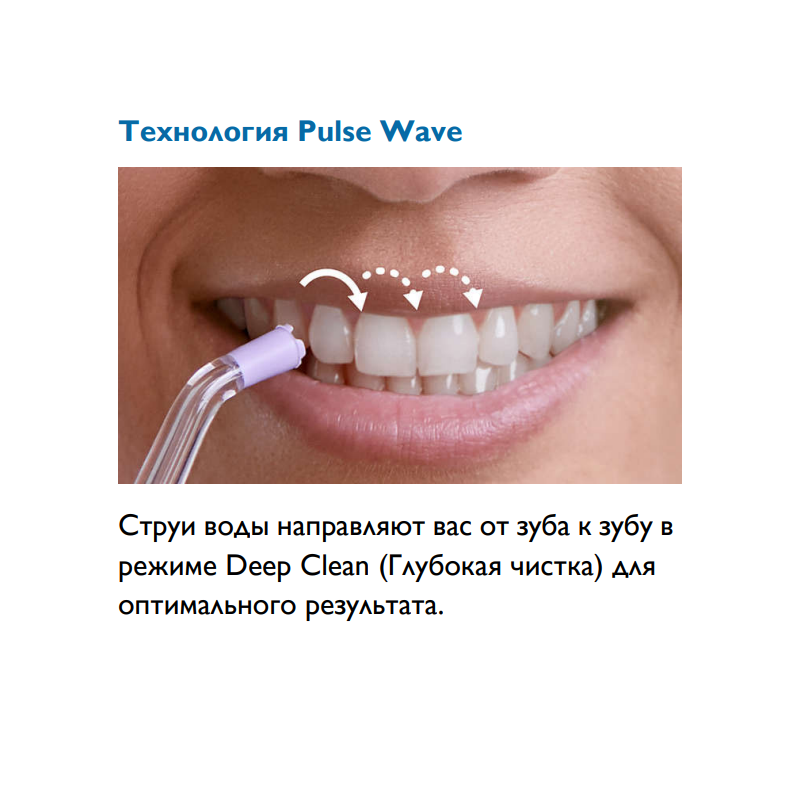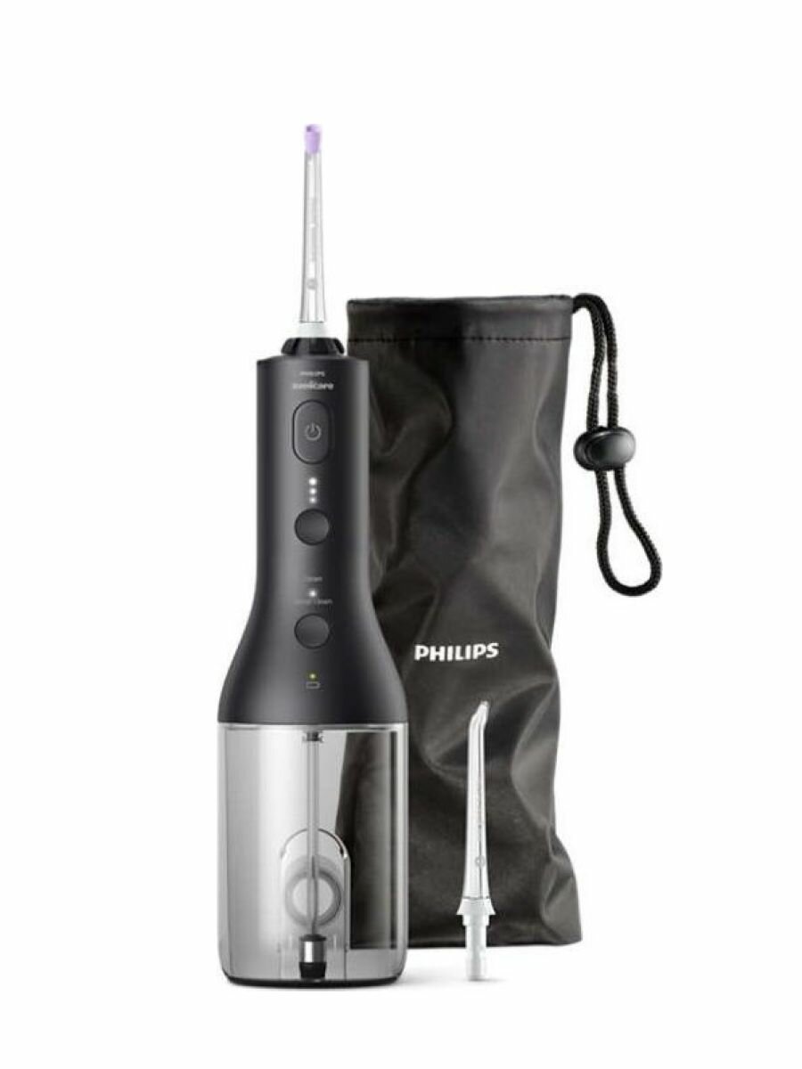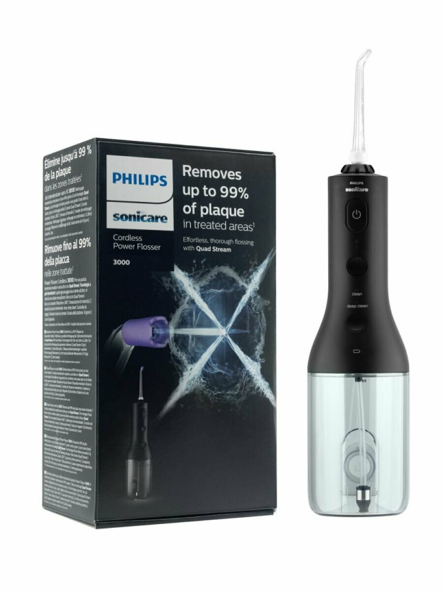 беспроводной Power Flosser - 1шт, насадка F1 Standard - 1 шт., насадка F3 Quad Stream - 1 шт., дорожная сумка, зарядный кабель USB, адаптер USB для электросети