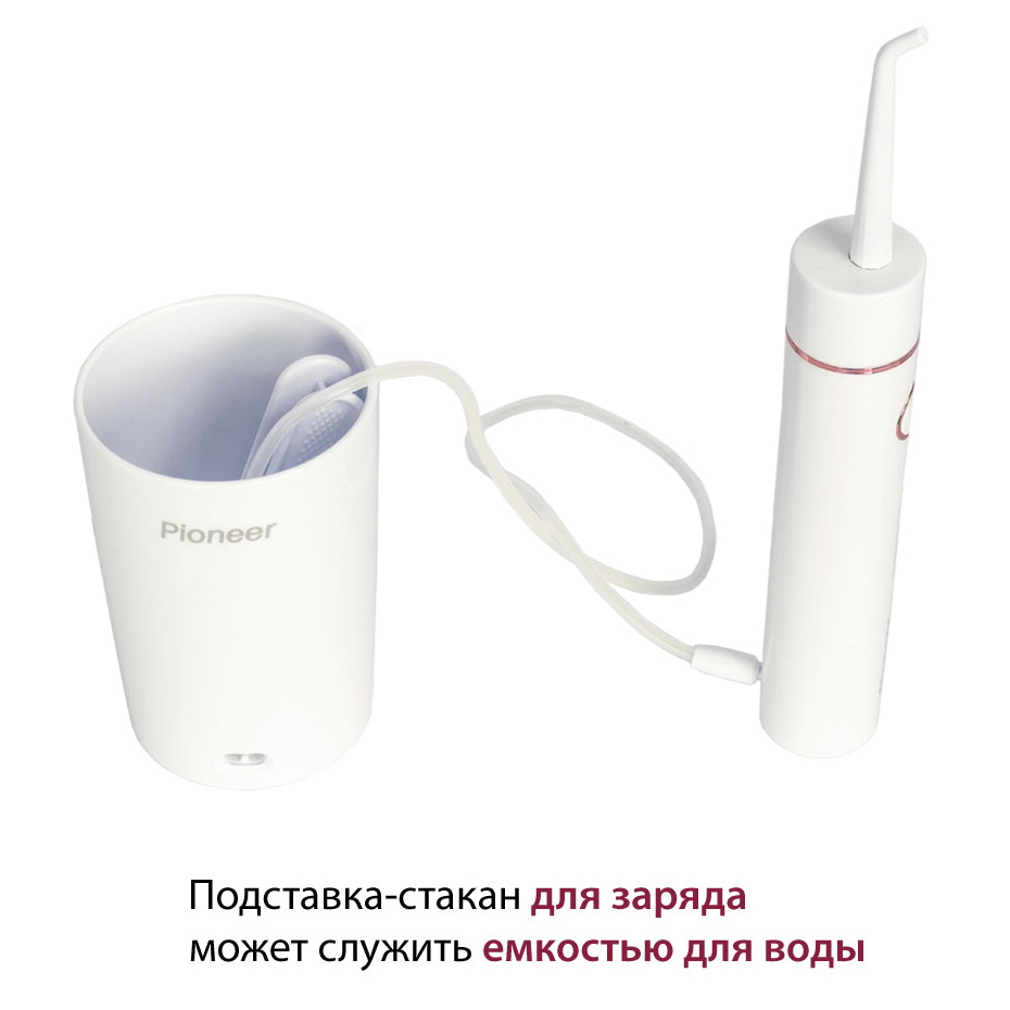 Комплектация: ирригатор, 2 стандартные струйные насадки, USB-кабель для зарядки батареи, подставка-стакан для зарядки батареи ирригатора, дорожный чехол