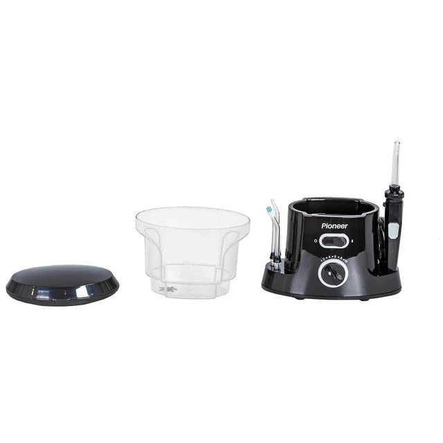 На ирригаторе удобно расположена кнопка паузы, позволяющая в любой момент остановить процедуру. Под крышкой корпуса распложен отсек для компактного хранения насадок.