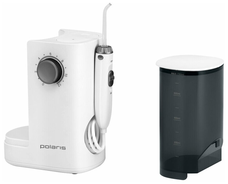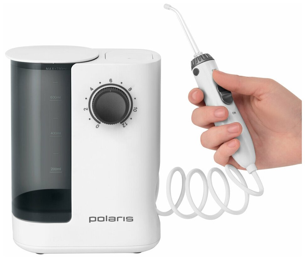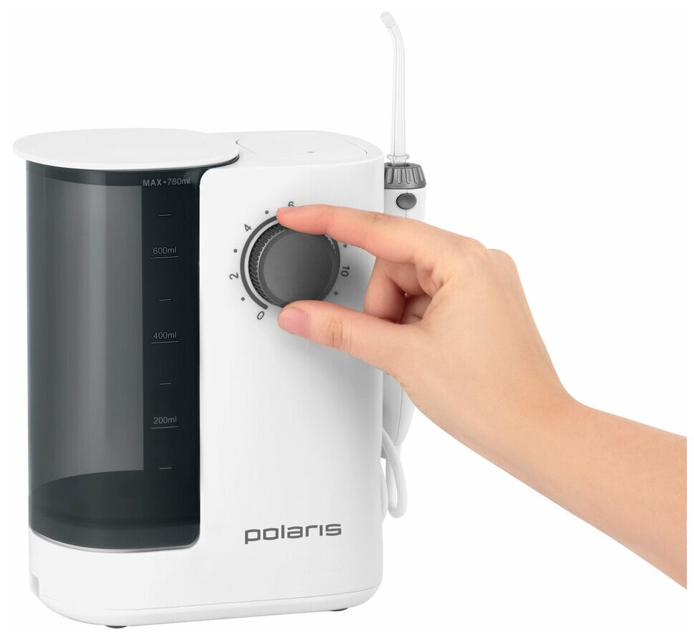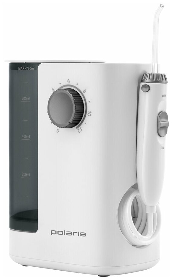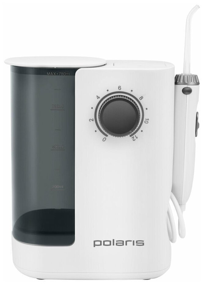 Объем резервуара 780 мл. Насадки в комплекте: 4 стандартные, 1 ортодонтическая, 1 пародонтологическая, 1 для языка.