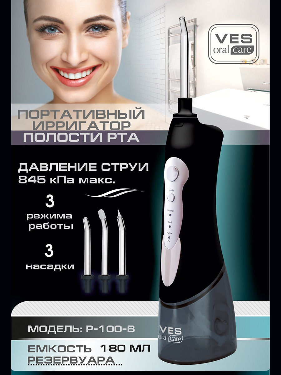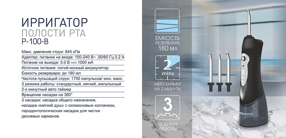 3 насадки для ирригатора, документация, зарядное устройство