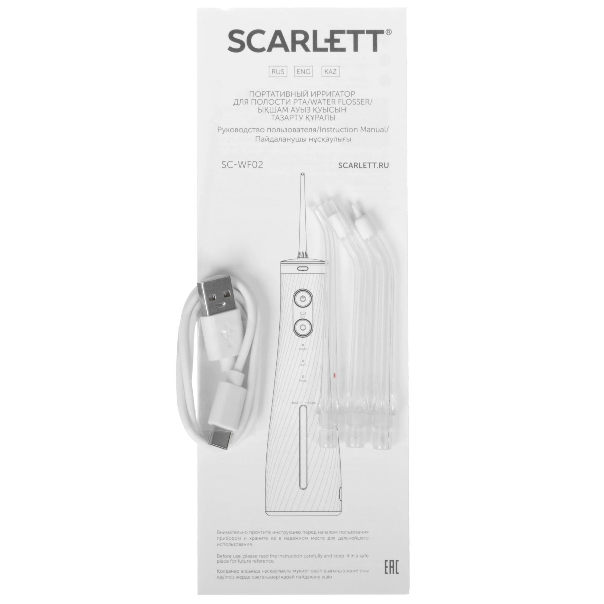 документация, кабель USB Type-C, насадка для имплантов х 1 шт., пародонтальная насадка х 1 шт., ещё