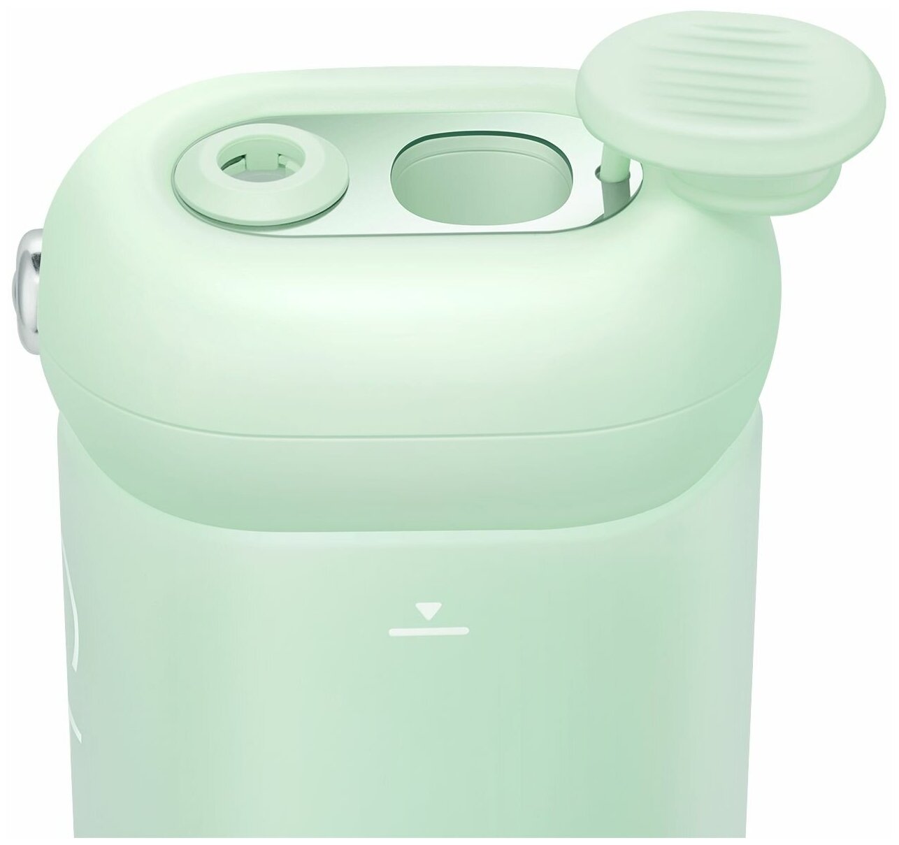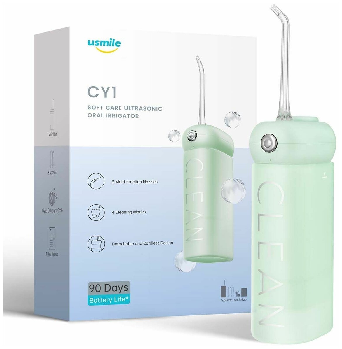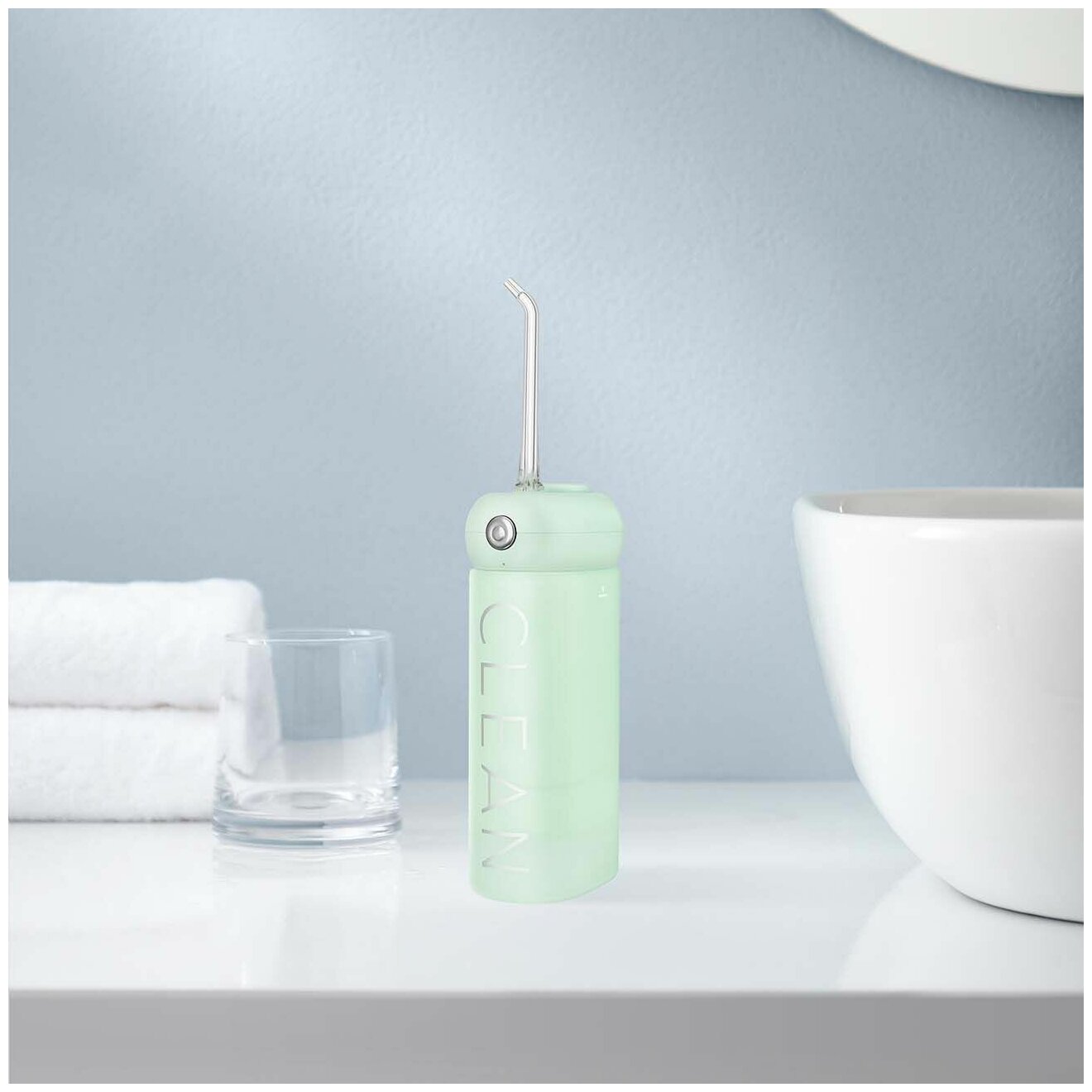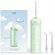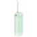 Ирригатор в корпусе зеленого цвета оснащен импульсной системой подачи воды. У него четыре режима работы, включая турбопоток и монопоток.