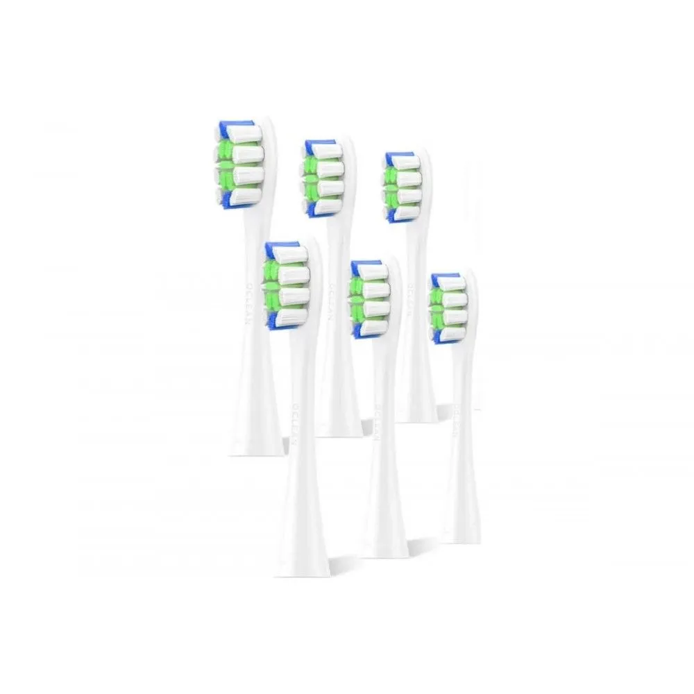 Насадки для электрической зубной щетки Oclean P1C1 W06, 6шт, белые подходят для всех моделей электрических зубных щеток OCLEAN. Щетинки, используемые в щетках, изготовлены из нейлона DuPont, чтобы обеспечить правильную скорость вибрации электрической зубной щетки. Щетинки очень гибкие, поэтому эффективно очищают налет. Щетинки DuPont Diamond & Classic для более эффективного удаления зубного налета и восстановления естественной яркой улыбки. Скребок для языка на задней части головки щетки. W-образный вырез для лучшего касания и комфорта. Материалы, одобренные FDA для безопасного использования.