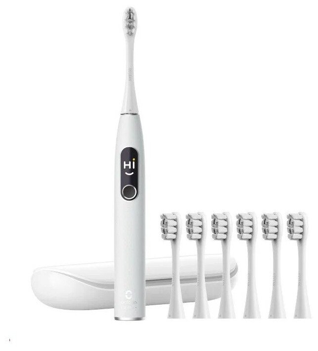 Зубная щетка - 1 шт., насадки - 7шт., футляр для 2х насадок и щетки - 1 шт., беспроводная зарядная база - 1 шт., крепеж магнитный для вертикальных поверхностей - 1 шт., инструкция - 1 шт.