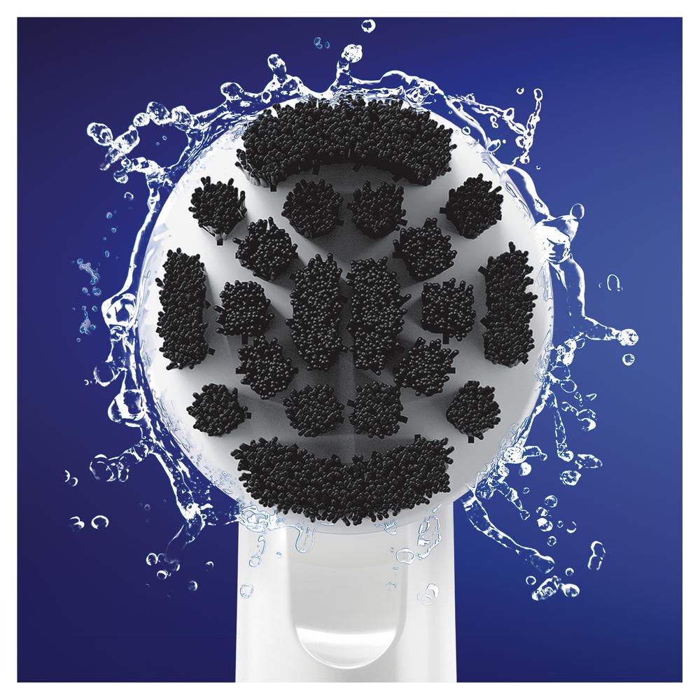 Щетинки насадки Oral-B Pure Clean средней жесткости содержат экстракт древесного угля, который тщательно очищает, удаляя до 100 % больше зубного налета по сравнению с мануальной зубной щеткой. Возвратно-вращательные движения и круглая форма насадки позволяют проникать даже в узкие межзубные промежутки, удаляя оттуда налет и остатки пищи.