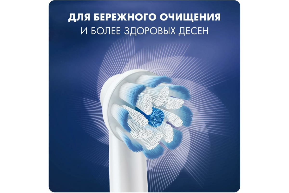 Насадка Sensitive Clean, созданная по принципу профессиональных стоматологических инструментов, имеет круглую лепестковидную форму и мягкие ультратонкие щетинки, благодаря чему она обеспечивает бережное очищение от Oral-B и способствует укреплению десен.