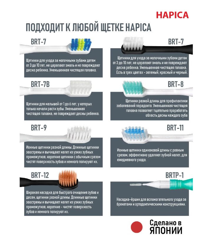 • 11 типов насадок. Подходят к любой щетке Hapica