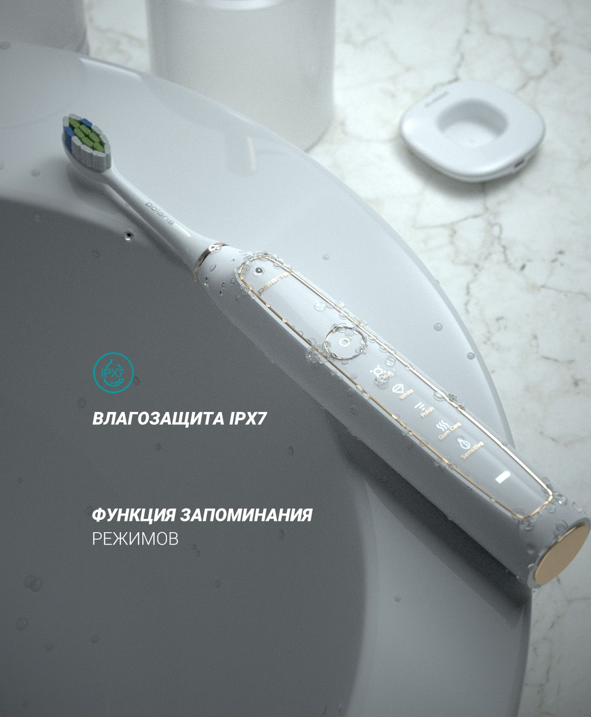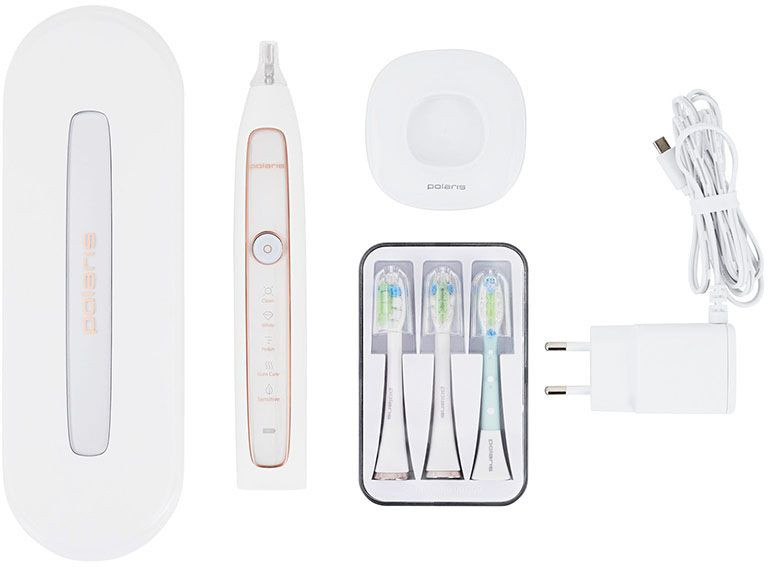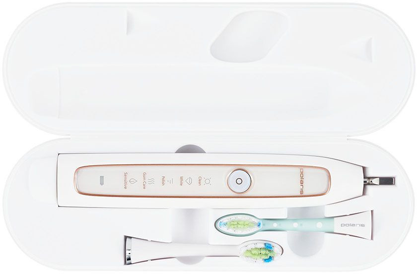 Описание: Электрическая зубная щетка Polaris PETB 0101 с уровнем влагозащиты IPX7 работает до 60 дней работы без подзарядки в режиме Sensitive. Имеется дорожный футляр c USB зарядкой и бесконтактное зарядное устройство. Автоматическое отключение через 2 минуты.