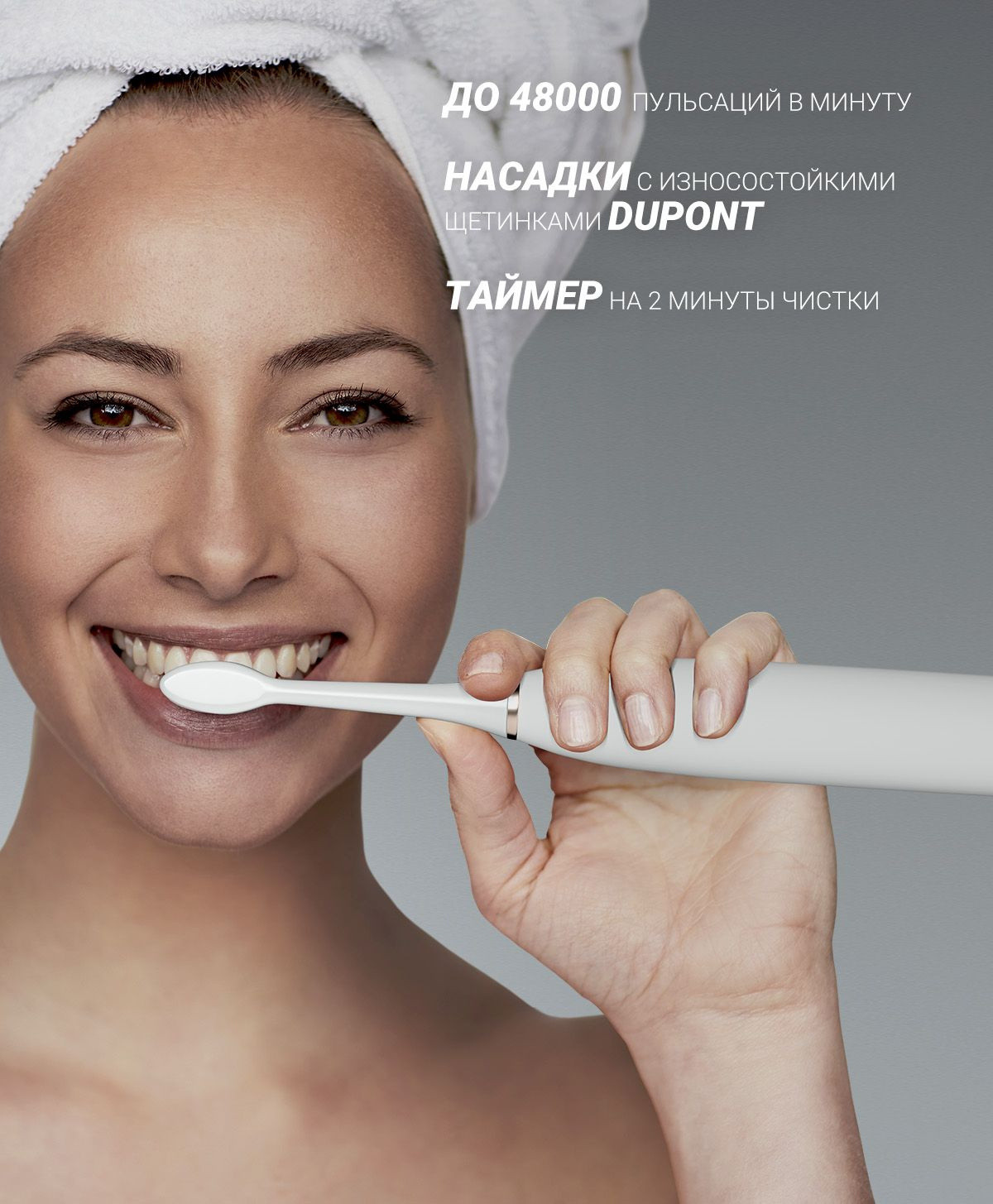 Особенности: 5 Режимов работы: Sensitive/Clean/White/Polish/Gum Care: режим Clean: 41000 пульсаций/мин, режим White: 48000 пульсаций/мин, режим Polish: 45000 пульсаций/мин, режим Gum care: 35000 пульсаций/мин, режим Sensitive: 31000 пульсаций/мин.