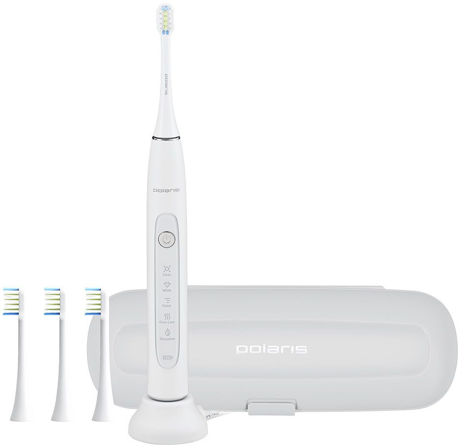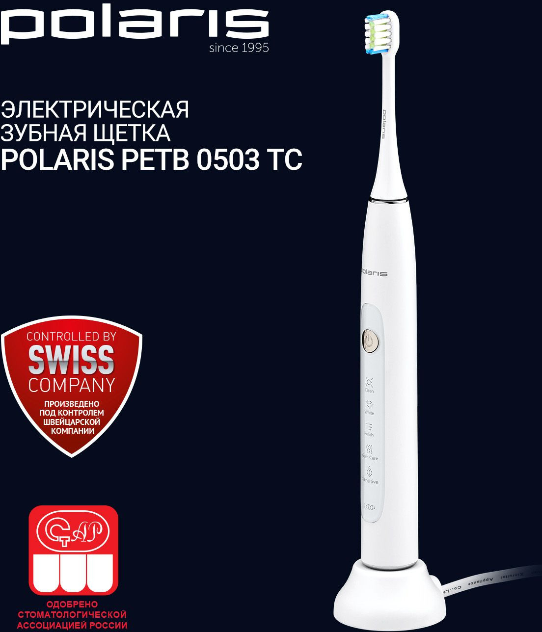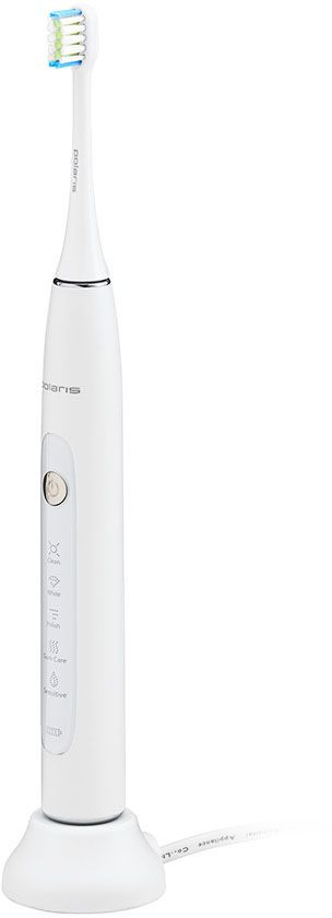 Описание: Электрическая зубная щетка Polaris PETB 0503 с уровнем влагозащиты IPX7 работает до 60 дней работы без подзарядки в режиме Sensitive. Имеется футляр для путешествий и беспроводное зарядное устройство. Автоматическое отключение через 2 минуты.
