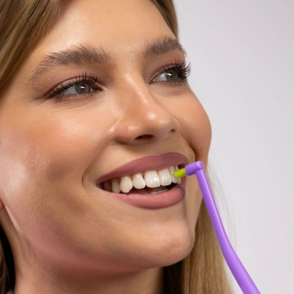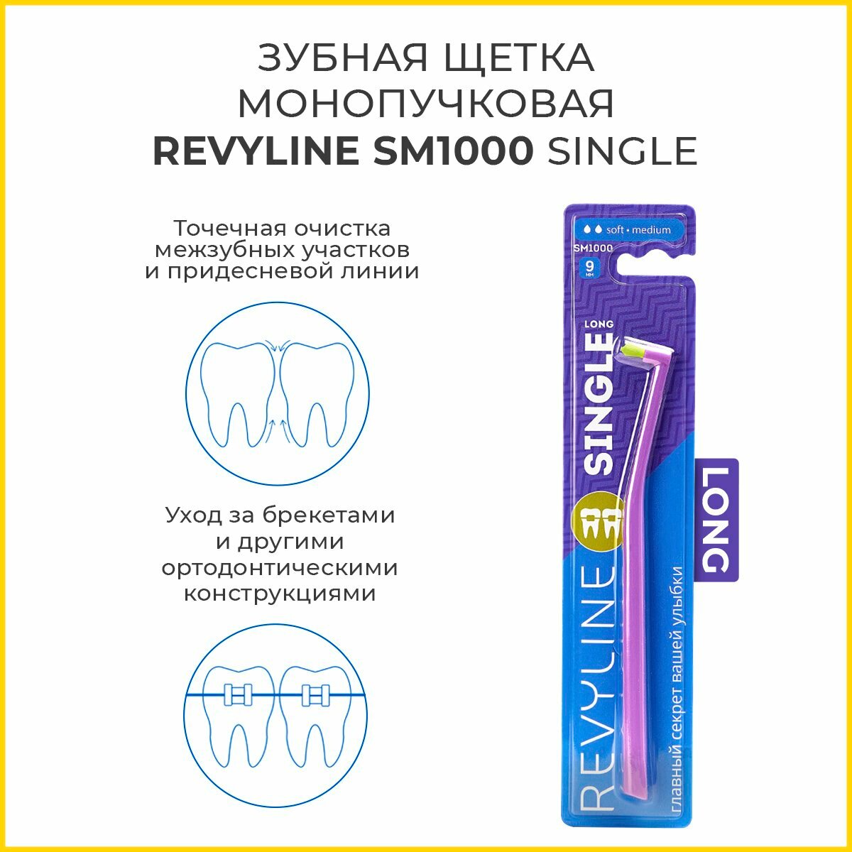 Зубная щетка Revyline SM1000 Single, монопучковая, фиолетовая - салатовая 6947 предназначена для чистки зубов.