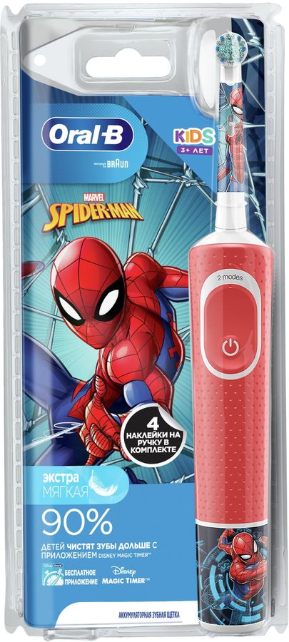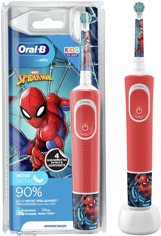 Электрическая зубная щетка Oral-B Kids для детей от 3 лет обеспечивает эффективный бережный уход за полостью рта. Зубная щетка имеет два режима специально для деликатного ухода за полостью рта ребенка. В комплект входят 4 стикера, с помощью которых можно персонализировать зубную щетку.
