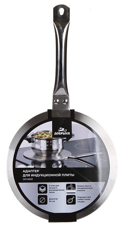 Адаптер для индукционных плит Добрыня DO-6003 – это надежный, удобный и стильный аксессуар, который позволит вам наслаждаться вкусной и здоровой пищей.
