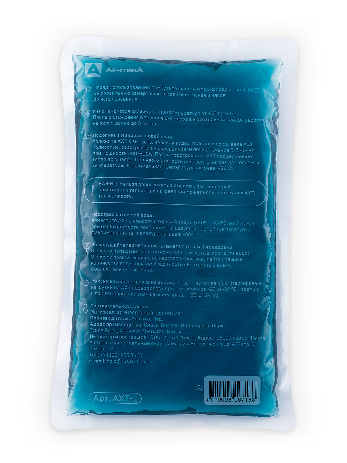 Мягкий аккумулятор холода и тепла – находка для термосумок небольших объемов. Легкий, не занимает много места, принимает нужную форму и эффективно занимает пространство внутри термосумки. Выручит при переноске ланча и обеда на работу, готовых блюд, свежих и скоропортящихся продуктов, медикаментов и деликатесов, которым нужен определенный температурный режим. Кроме того, может использоваться как холодный и теплый компресс.