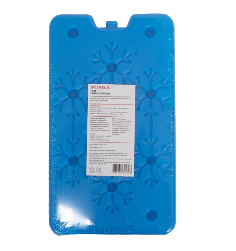 корпус – полиэтилен пищевой пластик, хладагент – нетоксичный теплоноситель