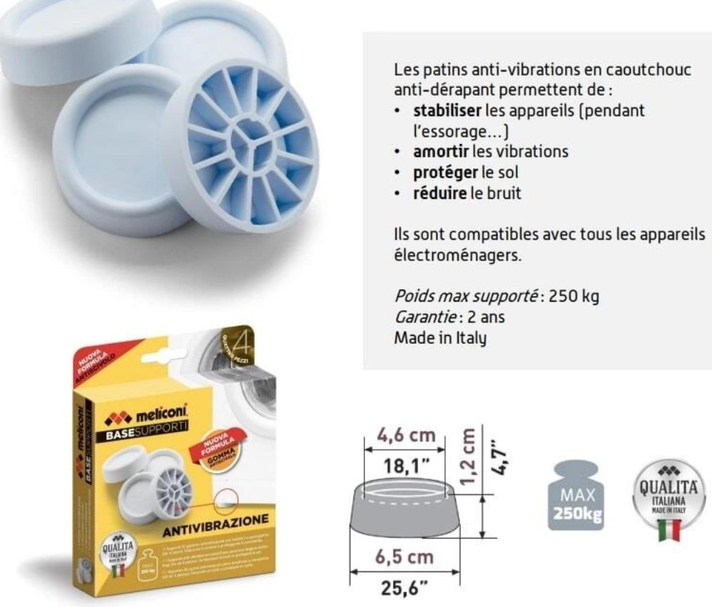 Комплект из 4 антивибрационных опор для стиральной или сушильной машины.