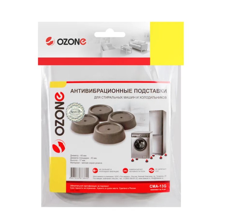 Антивибрационные подставки для стиральных машин и холодильников, 4 шт., цвет серый, круглые, бренд: OZONE, арт. CMA-13G