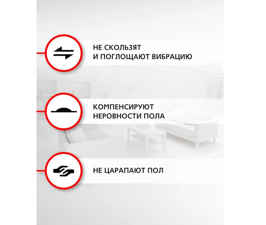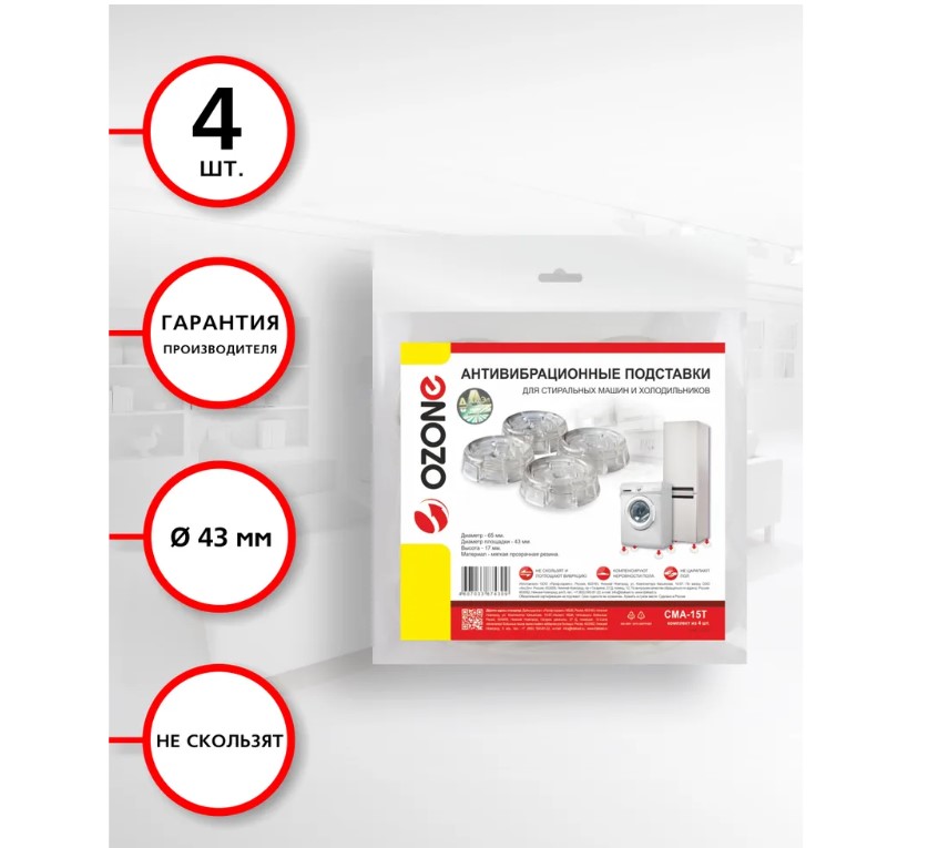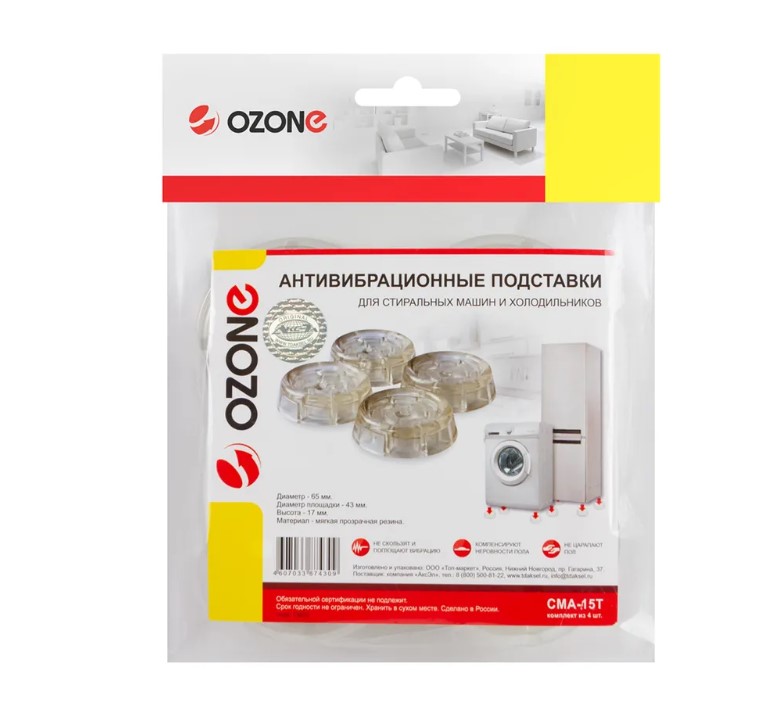 Антивибрационные подставки для стиральных машин и холодильников, 4 шт., цвет прозрачный, круглые, бренд: OZONE, арт. CMA-15T