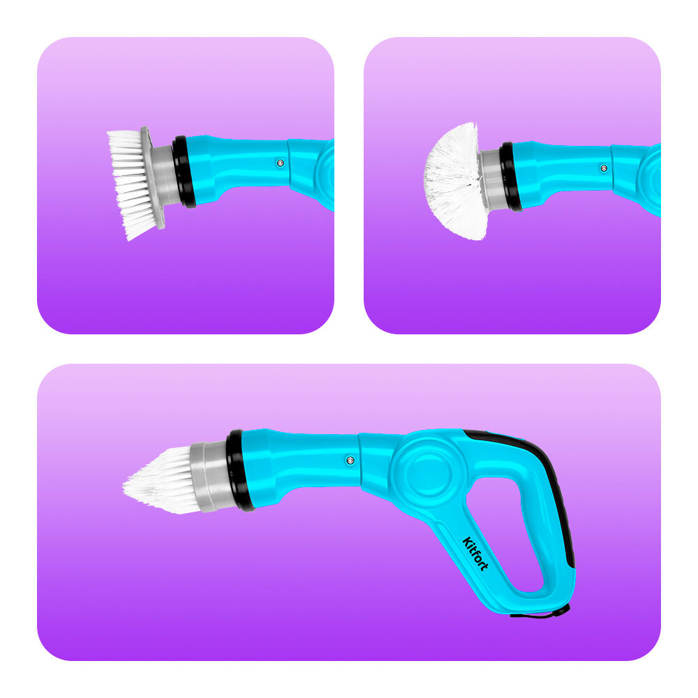 С помощью автоматической щётки для уборки КТ-9864 вы можете очистить самые разные поверхности в доме или в автомобиле. Благодаря работе от аккумулятора не нужно включать вилку в розетку, поэтому щётка имеет неограниченный радиус действия.