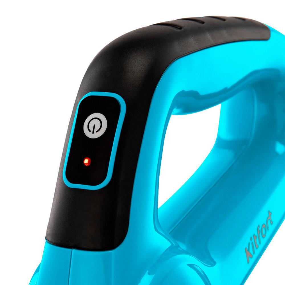 Эргономичная прорезиненная ручка удобно лежит в руке и не скользит во время рбаоты. Кнопка «Вкл/Выкл» включает и выключает устройство. Чтобы включить устройство, нажмите на кнопку один раз. При включении индикатор загорается красным.