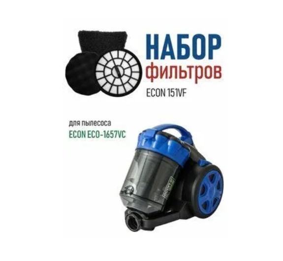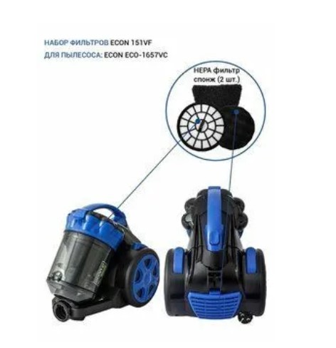Комплект сменных фильтров ECON 151VF подходит для пылесоса ECON ECO-1657VC включает в себя HEPA фильтр и спонж (2 штуки). Фильтры не требуют особого ухода. Для их очистки достаточно промыть водой и просушить в естественных условиях.Приобретая набор фильтров ECON 151VF Вы обеспечите более эффективную уборку и продлите жизнь своего пылесоса.