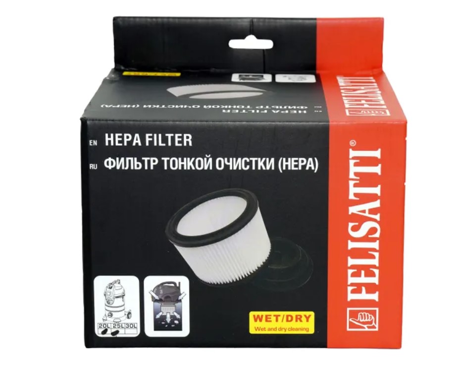 Фильтр НЕРА каркасный высокой степени фильтрации для тонкой очистки всасываемого воздуха от пыли и грязи. Фильтр предназначен для электрических строительных пылесосов Felisatti ПП-20/1200, ПП -25/1200.