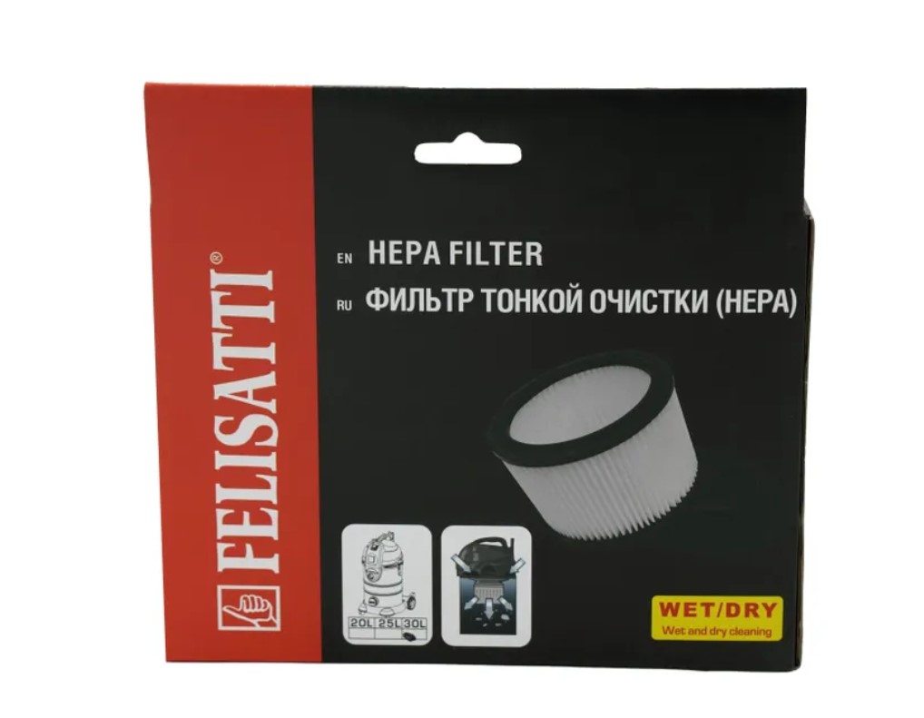 Фильтр НЕРА каркасный высокой степени фильтрации для тонкой очистки всасываемого воздуха от пыли и грязи. Фильтр предназначен для электрических строительных пылесосов Felisatti ПП-30/1400.