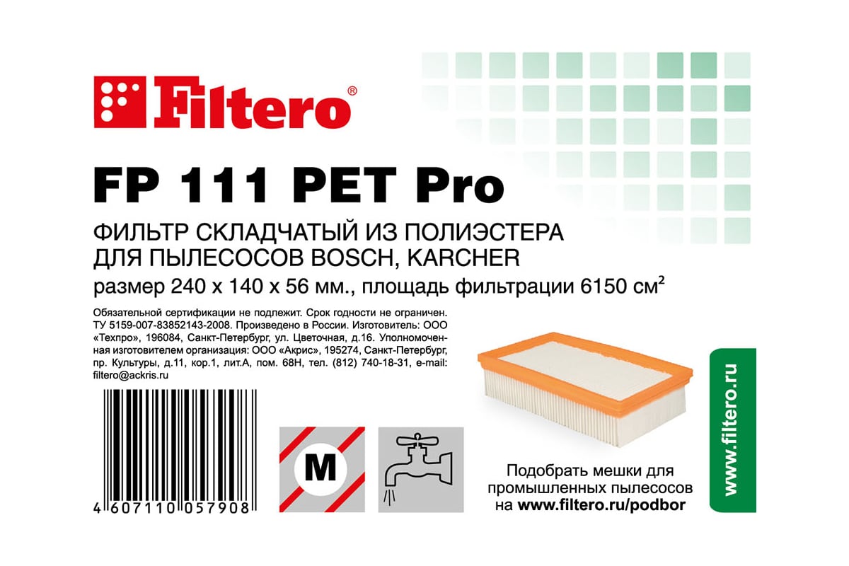 Фильтр складчатый FP 111 PET Pro Filtero 05790 обеспечивает эффективную фильтрацию воздуха, препятствует выходу мельчайших частиц из пылесоса в помещение. Фильтр моющийся и подлежит замене в случае снижения силы всасывания пылесоса. Изготовлен из полиэстра. Эффективность фильтрации - класс М.