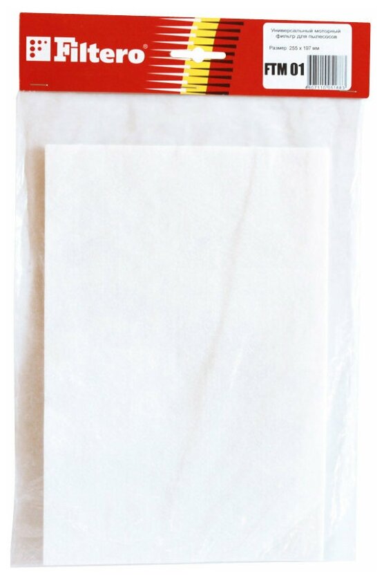 Микрофильтр FILTERO FTM 01 05187 является универсальным и подходит для всех бытовых пылесосов, предусматривающих использование моторных фильтров. Применяется для эффективной фильтрации воздушного потока, выходящего из пылесоса. Фильтр задерживает мельчайшие частицы пыли из пылесборника, а также угольную пыль со щеток электромотора. Для изготовления нового фильтра следует положить старый фильтр на универсальный FTM 01, обвести его по контуру и вырезать. Микрофильтр подлежит регулярной замене согласно рекомендациям производителя вашего пылесоса.