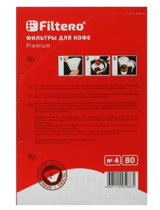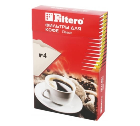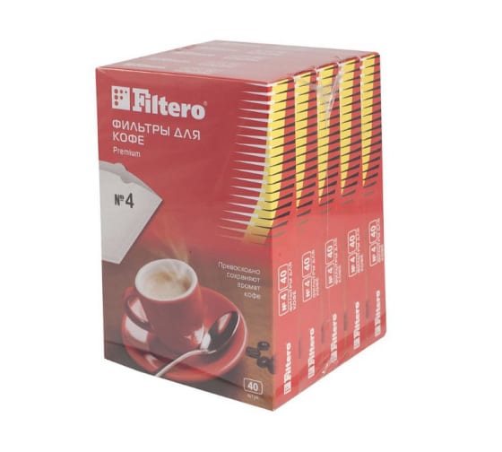 Комплект фильтров для кофе, №4, 200 шт, бел Filtero используется с кофемашинами капельного типа, для очистки жидкости от мелких частиц молотого кофе. При этом вкус и цвет напитка не меняются.