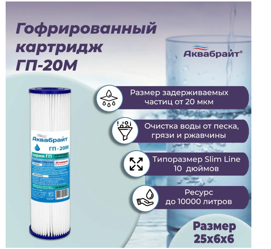 Картридж ГП-20М представляет собой гофрированный фильтр, предназначенный для механической очистки воды. Он является незаменимым компонентом систем водоочистки, использование которого позволяет эффективно удалять различные механические примеси из воды.