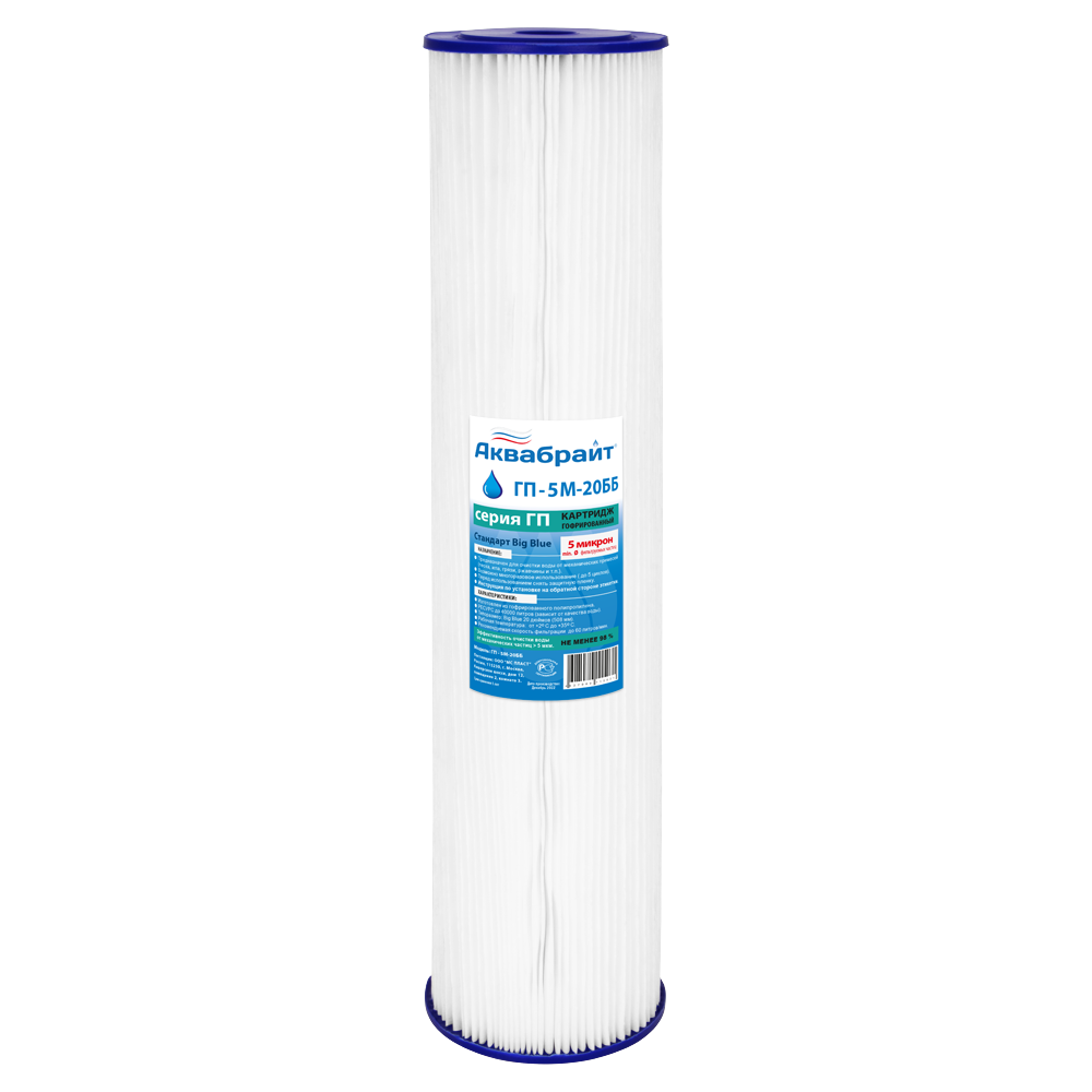 Картридж АКВАБРАЙТ ГП-5 М-20ББ из гофрированного полипропилена с пищевым допуском.