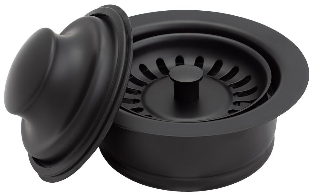 Металлическая горловина черного цвета устанавливается на сливное отверстие мойки и позволяет объединить дополнительные приборы — измельчитель — с сантехникой также и по дизайну.