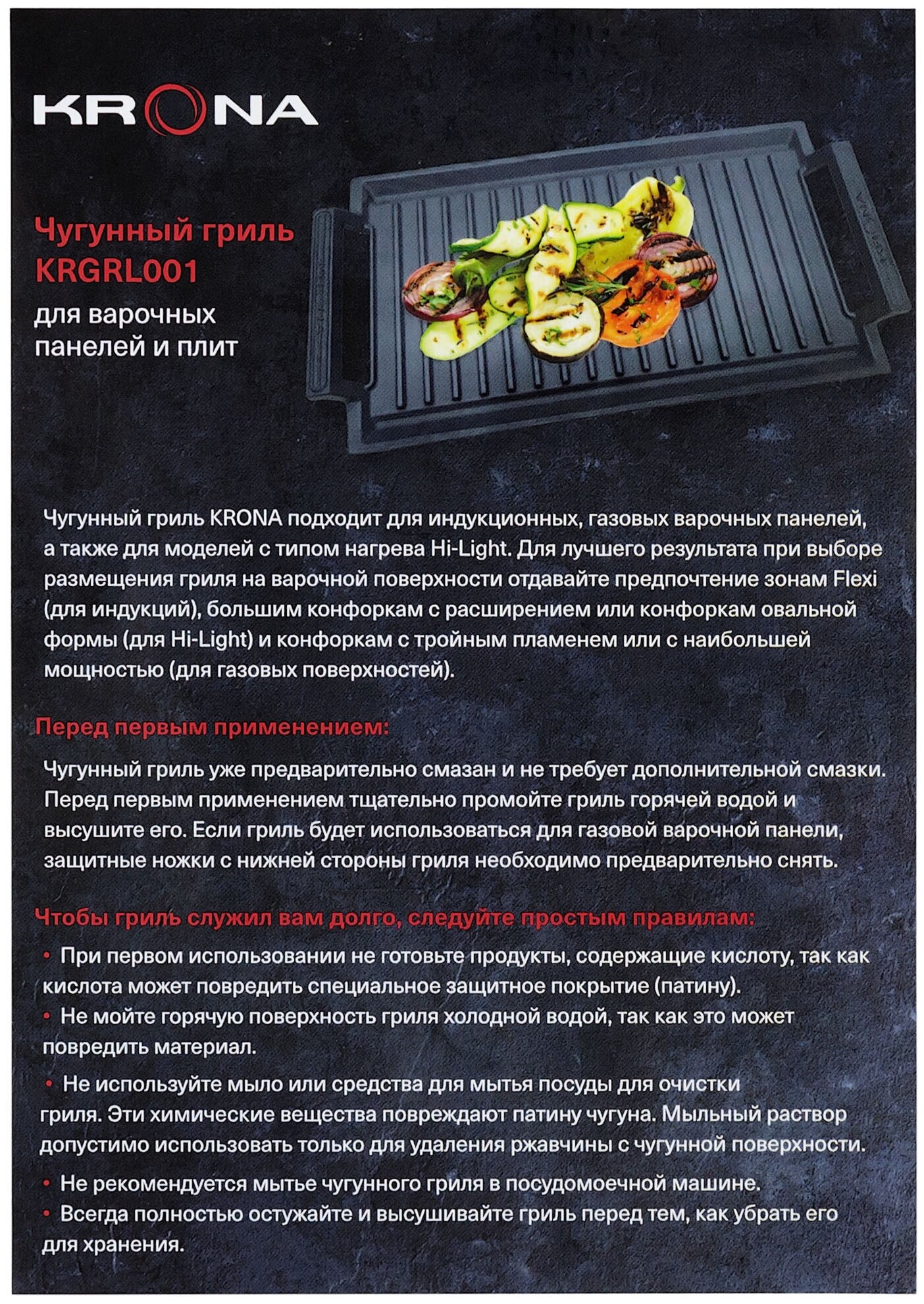 Гриль совместим с индукционными, электрическими и газовыми варочными поверхностями