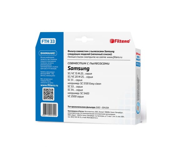 Фильтр НЕРА FTH 33 Filtero 05709 является сменным элементом для пылесосов. Предназначен для очистки выходящего воздуха. Он способен задерживать мельчайшие частички пыли, пыльцы, бактерии, грибковые споры. Не подлежит очистке.