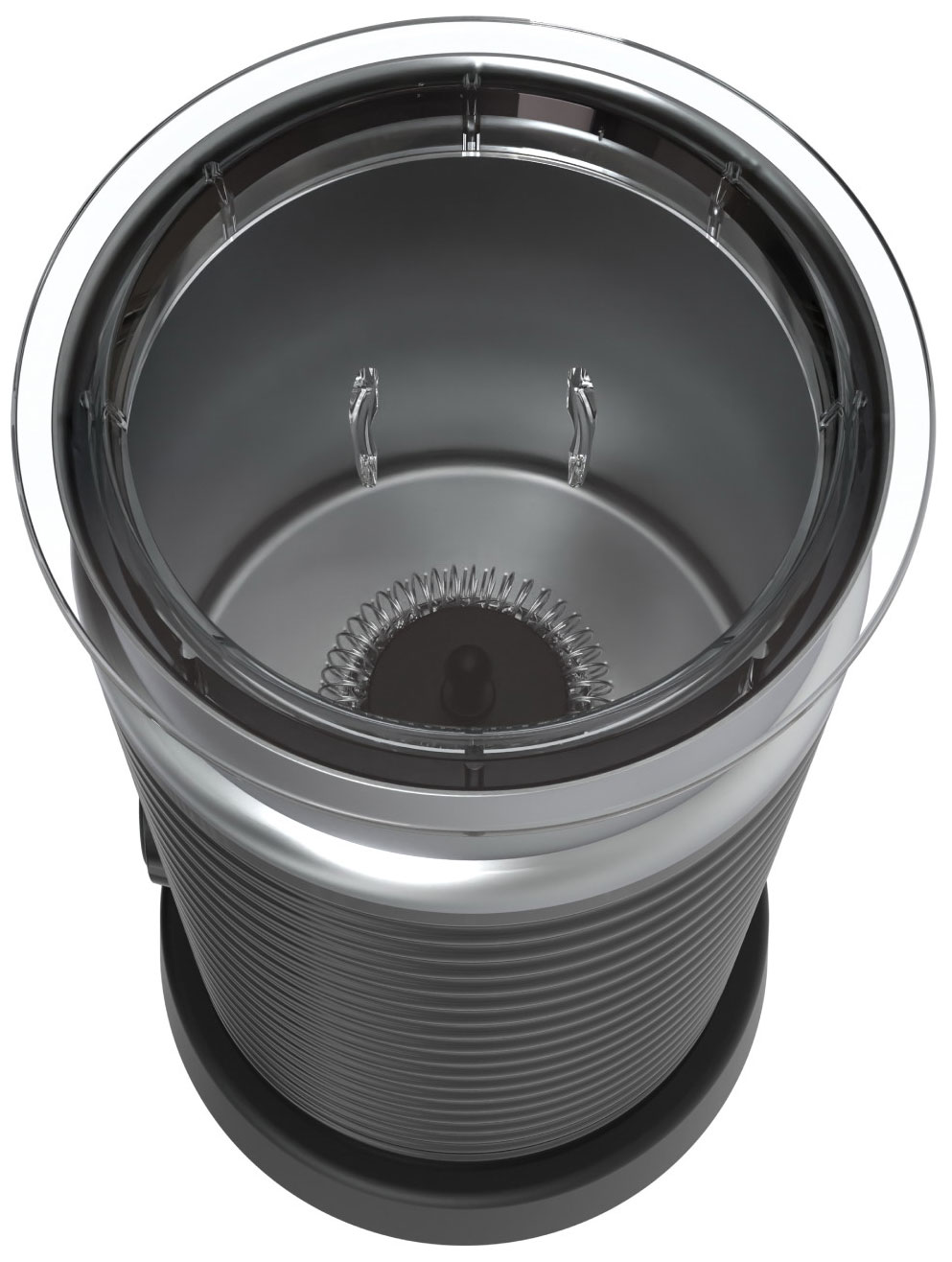 Емкость для молока антипригарная. Если вы хотите просто подогреть молоко до 65 градусов, то нужно снять венчик с насадки, и молоко будет просто подогреваться, не образовывая пенку. Емкость: Макс. 130 мл для вспенивания (рекомендуется использовать молоко с жирностью от 3,5%), 250 мл для подогрева молока.