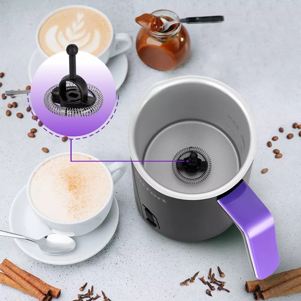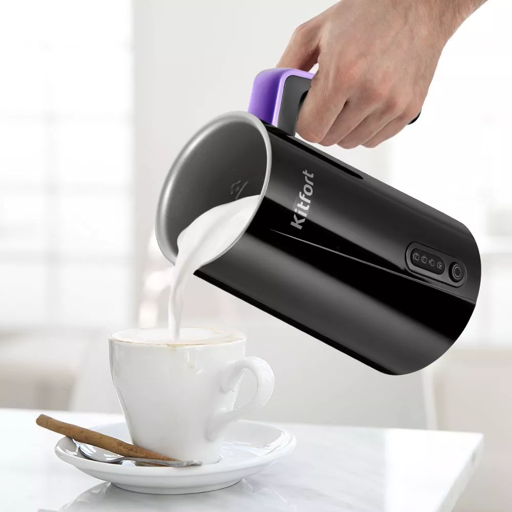 Насадка используется для получения молочной пенки, а также для перемешивания молока во время его подогрева. Без перемешивания молоко может подгореть. Для вашего удобства на внутренней стенке устройства сделаны отметки для заполнения молоком.
