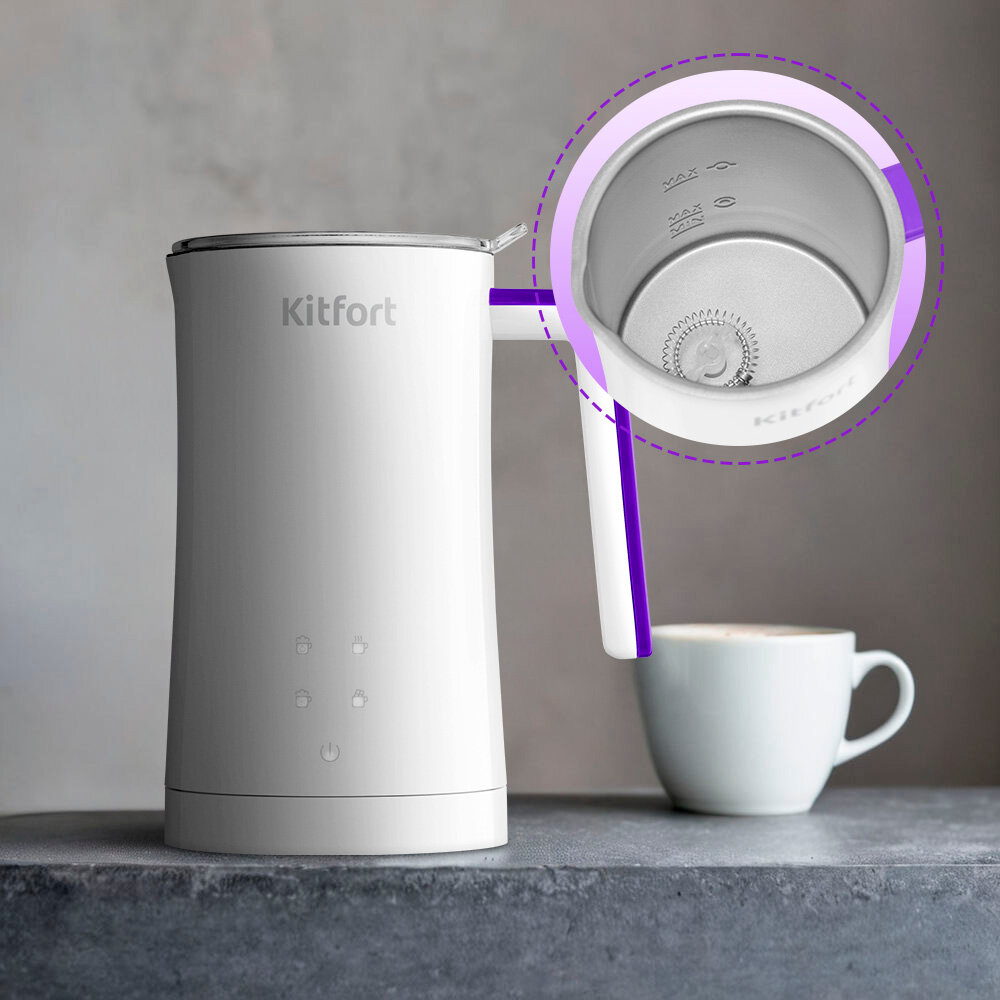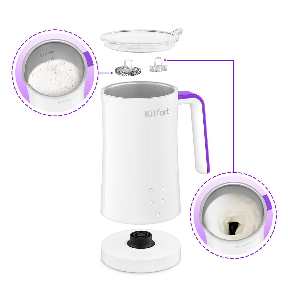 Капучинатор КТ-7423 – устройство для приготовления молочной пенки, используемой для напитков на базе эспрессо: капучино, латте и латте макиато. В капучинаторе можно не только взбивать молоко, но и смешивать и подогревать напитки.