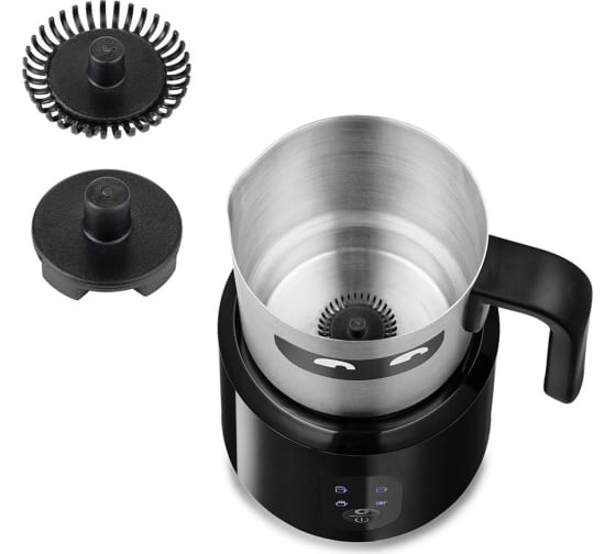 Насадка для смешивания используется для перемешивания молока во время его подогрева, насадка для вспенивания – для получения молочной пенки. Сам питчер имеет антипригарное покрытие и прозрачную крышку для наблюдения для процессом.