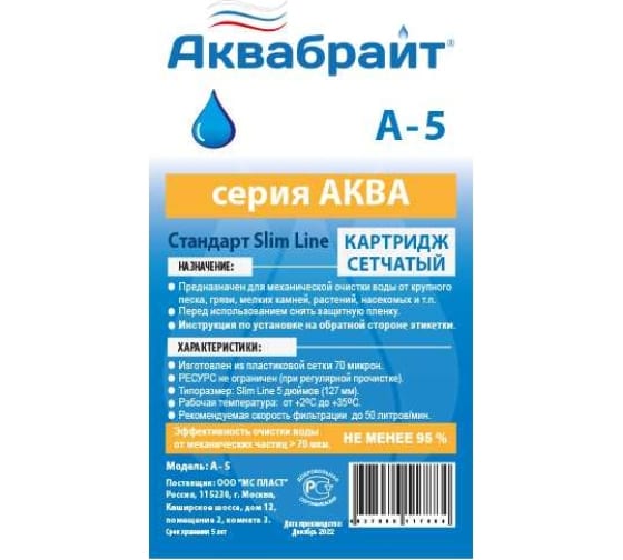 Картридж АКВАБРАЙТ А-5 состоит из каркаса и полимерной сетки с размером ячейки 70 мкм.