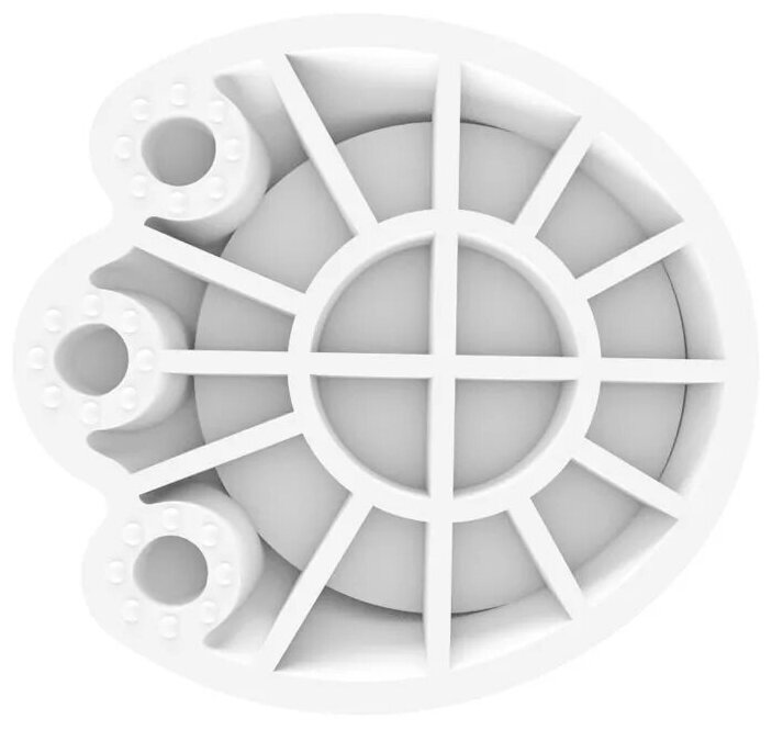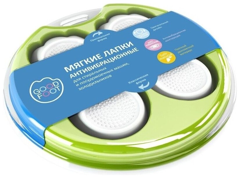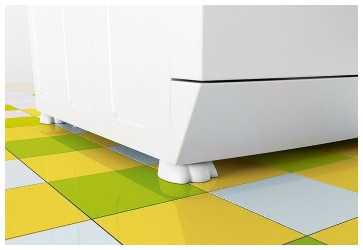Конструкция с рёбрами жёсткости эффективно поглощает вибрацию, а также равномерно распределяет нагрузку на пол. Благодаря рельефной поверхности лапок ножки техники не скользят.