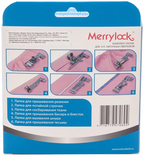 Набор из 6-ти лапок Merrylock для 4-ниточного оверлока.