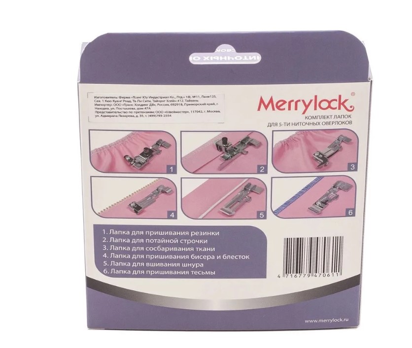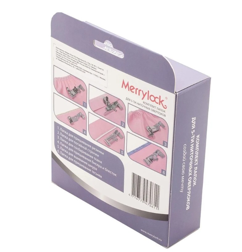 Набор из 6-ти лапок Merrylock для 5-ниточного оверлока. Комплект включает в себя: