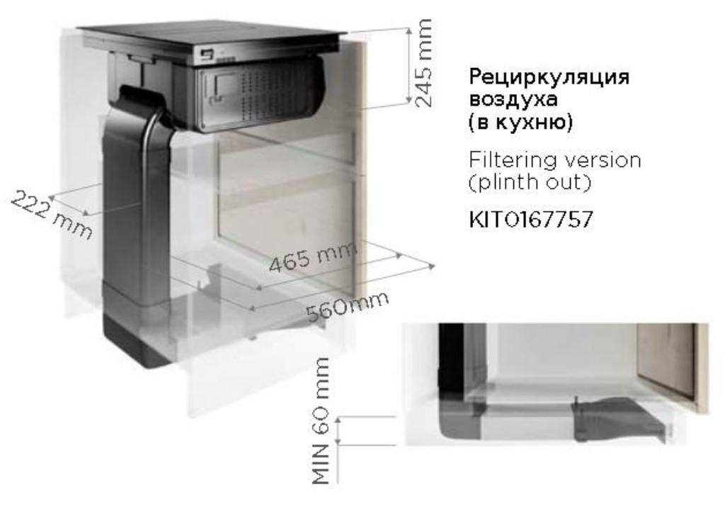 Обеспечивает переход вытяжки в режим рециркуляции без необходимости подключения к вентиляции;