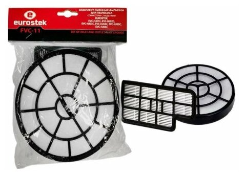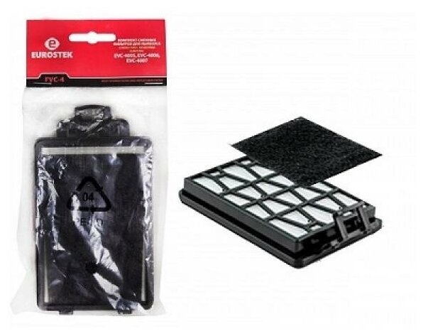 Набор фильтров для пылесоса Eurostek FVC-4 - необходимый комплект аксессуаров для пылесоса, состоящий из внутреннего фильтра (спонж) и внешнего HEPA-фильтра, которые способны удерживать мельчайшие частички пыли и обеспечивать чистый воздух при уборке помещения.* Все элементы набора выполнены из качественных материалов.* Набор подходит для пылесосов Eurostek EVC-4005 / EVC-4006 / EVC-4007. EVC-KP03B, EVC-KP04B* Фильтры выполнены под конкретную модель, что гарантирует полную совместимость при их установке. Своевременная смена фильтров позволяет продлить срок службы пылесоса и улучшить качество уборки.