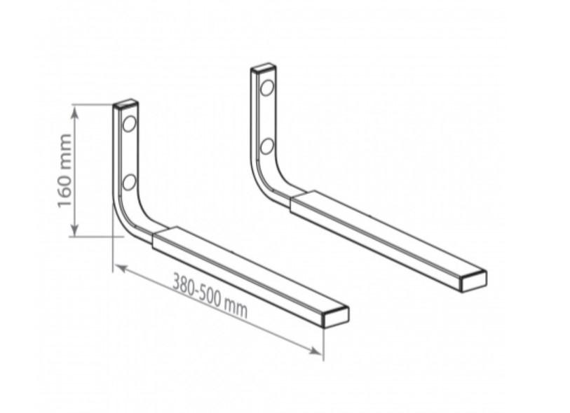 Регулируемые по глубине опоры 380-500мм, Свободная ширина установки кронштейнов, Безопасная фиксация СВЧ-печи на кронштейне, Надежная стальная конструкция