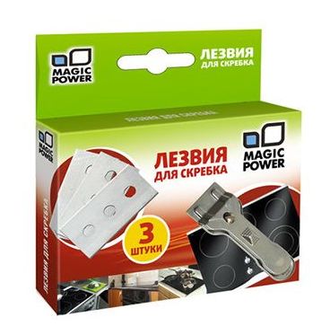 Дополнительно предназначены для чистки стеклокерамических, кафельных и стеклянных поверхностей от устойчивых засохших и пригоревших загрязнений.Лезвия изготовлены из специального прочного материала, при правильном использовании не оставляют следов и царапин на очищаемой поверхности. Применение скребка с лезвиями облегчает чистку и уход за стеклокерамической плитой без применения абразивных губок.