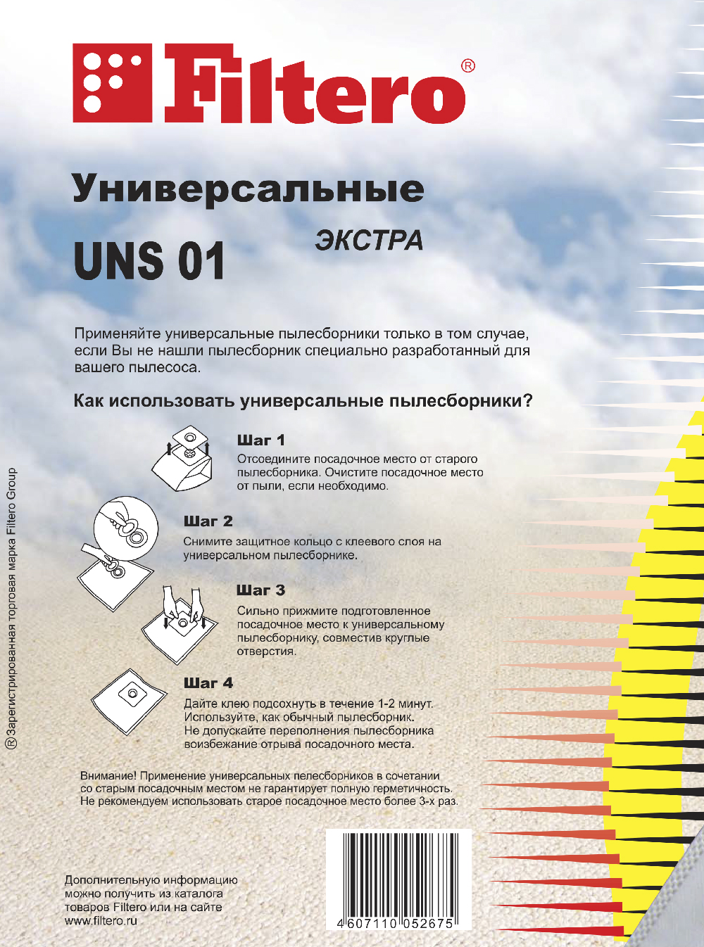 Инструкция по применению универсального пылесборника Filtero приведена на тыльной стороне упаковки.